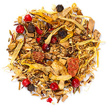 pumpkin spice: black tea, cinnamon, ginger, cloves, natural pumpkin spice flavor, cardamom & marigold flowers