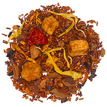 cinnamon rooibos chai: rooibos tea, apple pieces, cinnamon, natural spicy cinnamon flavor & safflower